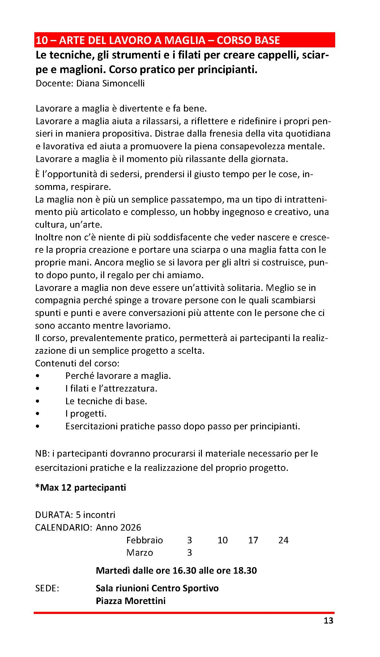 Arte del lavoro a maglia - A disposizione le dispense degli incontri