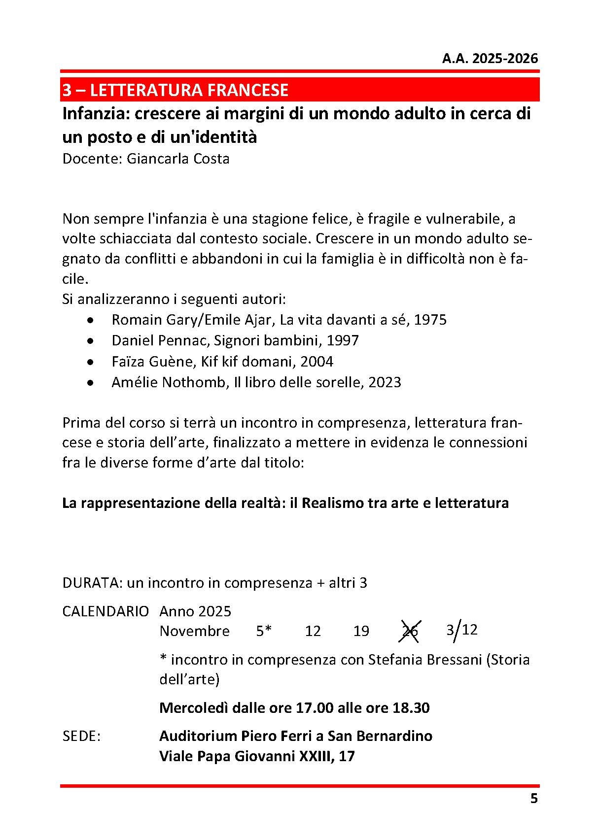 I corsi 2025/26