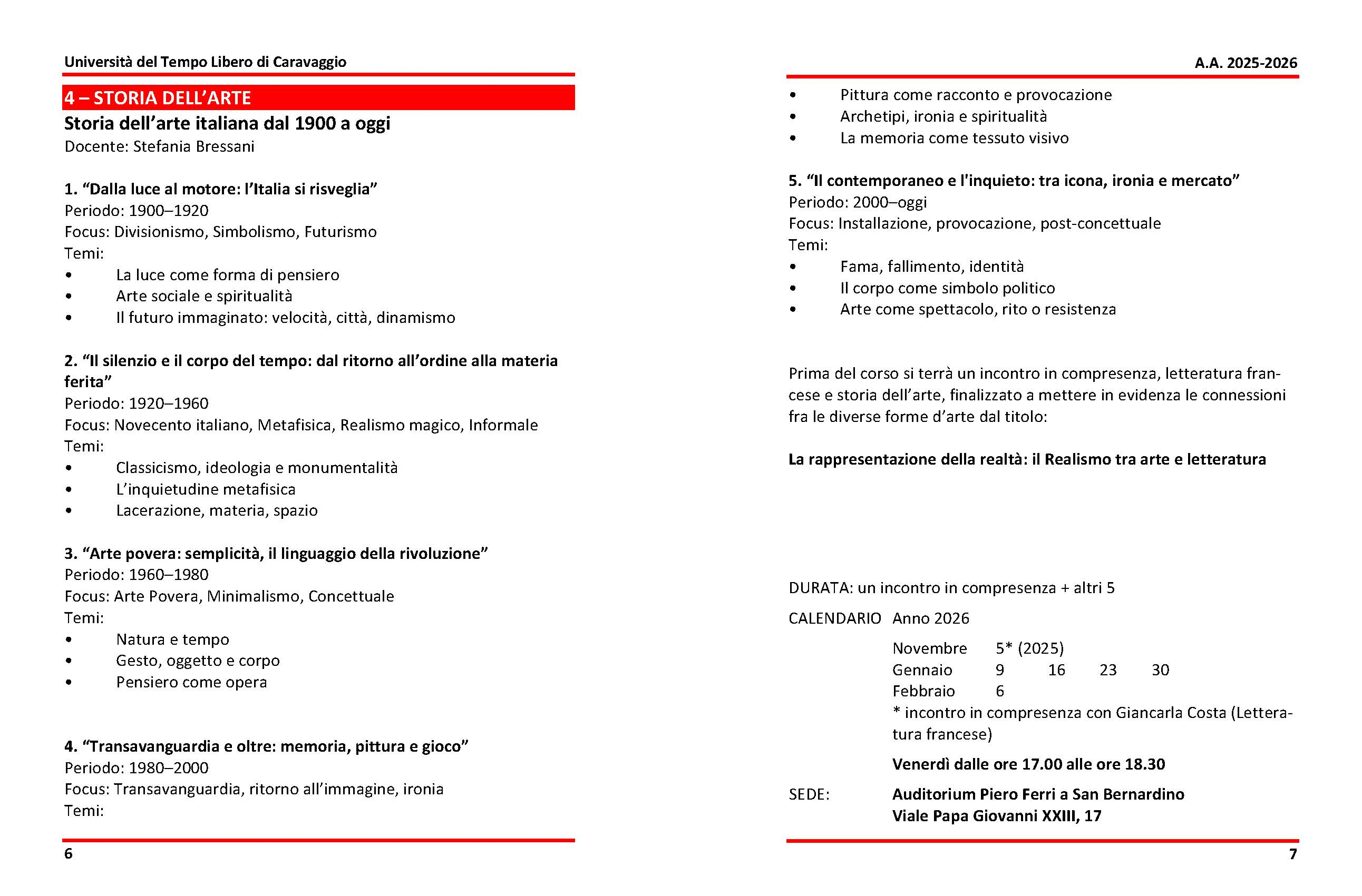 I corsi 2025/26