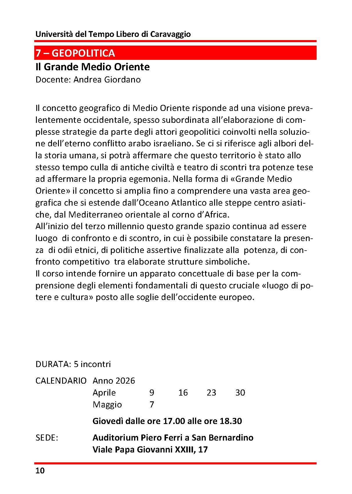 I corsi 2025/26